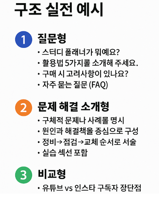 - 서두 3문장 요약: 독자가 얻을 결과, 대상, 방법을 3문장으로 제시합니다.
