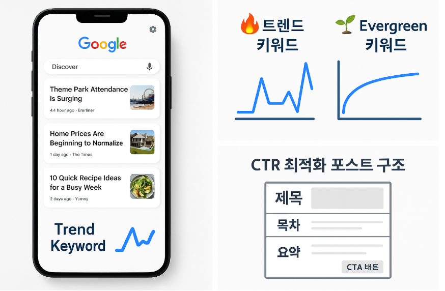디스커버는 최신성과 사용자 관심사가 핵심입니다. 발행 시점과 가까운 이슈, 트렌드 키워드, 계절성 콘텐츠가 노출 가능성을 높입니다.