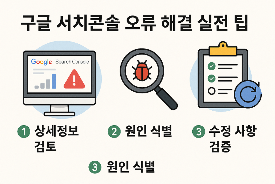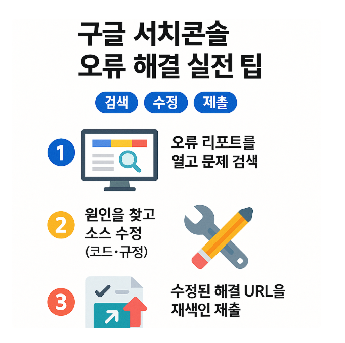 핵심: “현상(오류명) → 단계(크롤링/색인/평가) → 조치(코드/콘텐츠/링크)” 순서로 접근하면 해결 속도가 빨라집니다.