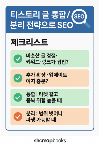 | 티스토리 글 통합/분리 전략으로 SEO 잡기 (0) | 2025.10.07 |