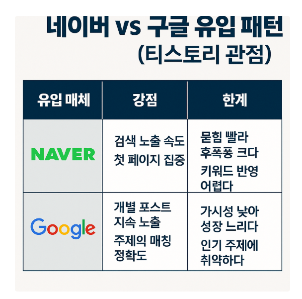 네이버 vs 구글 유입 패턴 비교 (티스토리 관점)