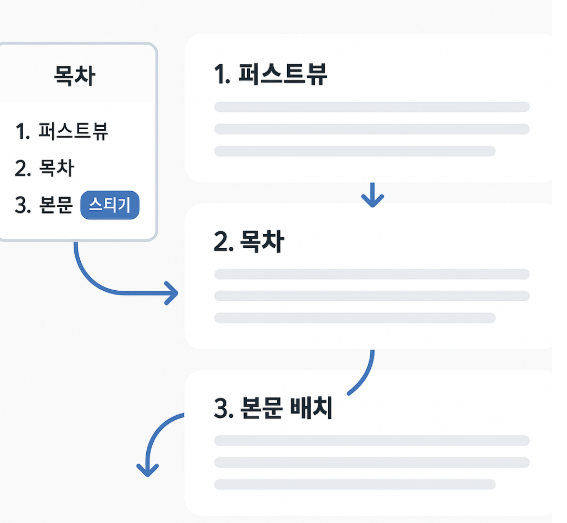 본문 상단의 간결한 목차는 스크롤 비용을 줄이고, 섹션 끝에는 다음 섹션·관련 글 링크를 배치해 회전율을 끌어올립니다.