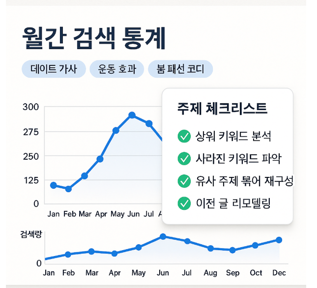 핵심: “느리지만 정확하게.” 월 단위 스냅샷을 쌓으면 주제 전략이 안정됩니다.