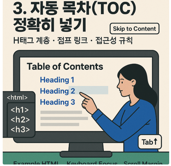 자동 목차(TOC) 정확히 넣기|H태그 계층·점프 링크·접근성 규칙