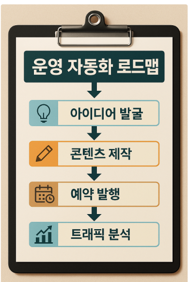 블로그 운영의 가장 큰 부담은 반복적인 작업입니다. 글 작성·이미지 업로드·링크 연결·유입 분석 등을 자동화하면 시간을 전략적 기획에 투자할 수 있습니다.