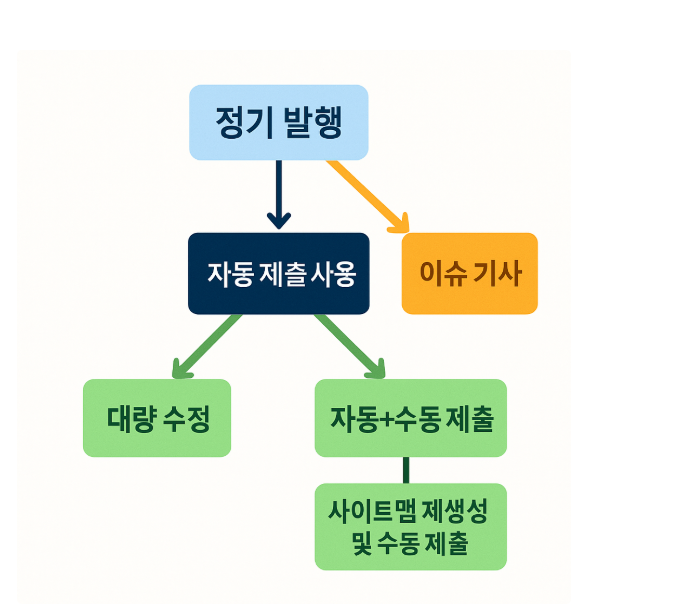 - 정기 발행 블로그: 자동 제출 고정 + 주간 점검.