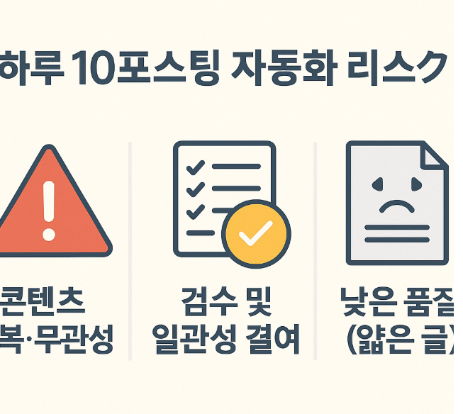 하루 10포스팅 자동화는 잘 설계하면 성장의 가속페달이 되고, 설계 없이 밀어붙이면 사이트 전반의 신뢰를 갉아먹습니다. 핵심은 템플릿화된 구조와 엄격한 QA, 그리고 빠른 리라이트 루프입니다. 이 세 가지를 시스템으로 고정하면, 볼륨과 품질을 함께 끌어올릴 수 있습니다.