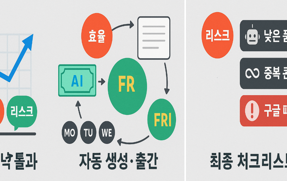 다만 볼륨 증가는 곧 품질 저하·중복·정책 위반 리스크로 이어지기 쉽습니다. 따라서 자동화의 핵심은 “많이 발행”이 아니라 “안정적으로 반복 가능한 품질”입니다.