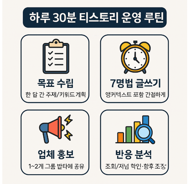 30분 루틴티스토리 운영템플릿 글쓰기내부 링크SEO 체크