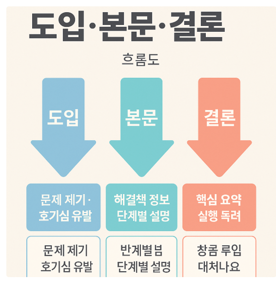 | 도입 | 문제·약속·결과(숫자/기간) 제시 | 요약 박스 3~4문장 |